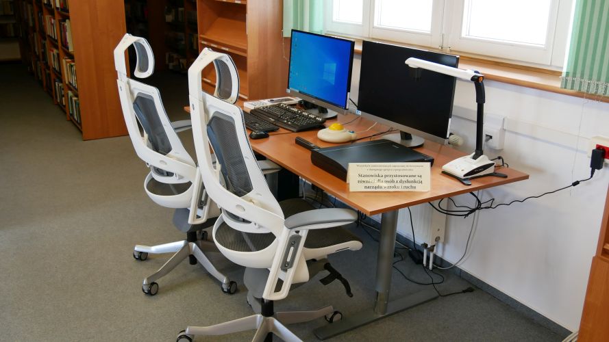 • w Bibliotece stworzono miejsce do pracy dla osób z niepełnosprawnością ruchową i osób słabowidzących