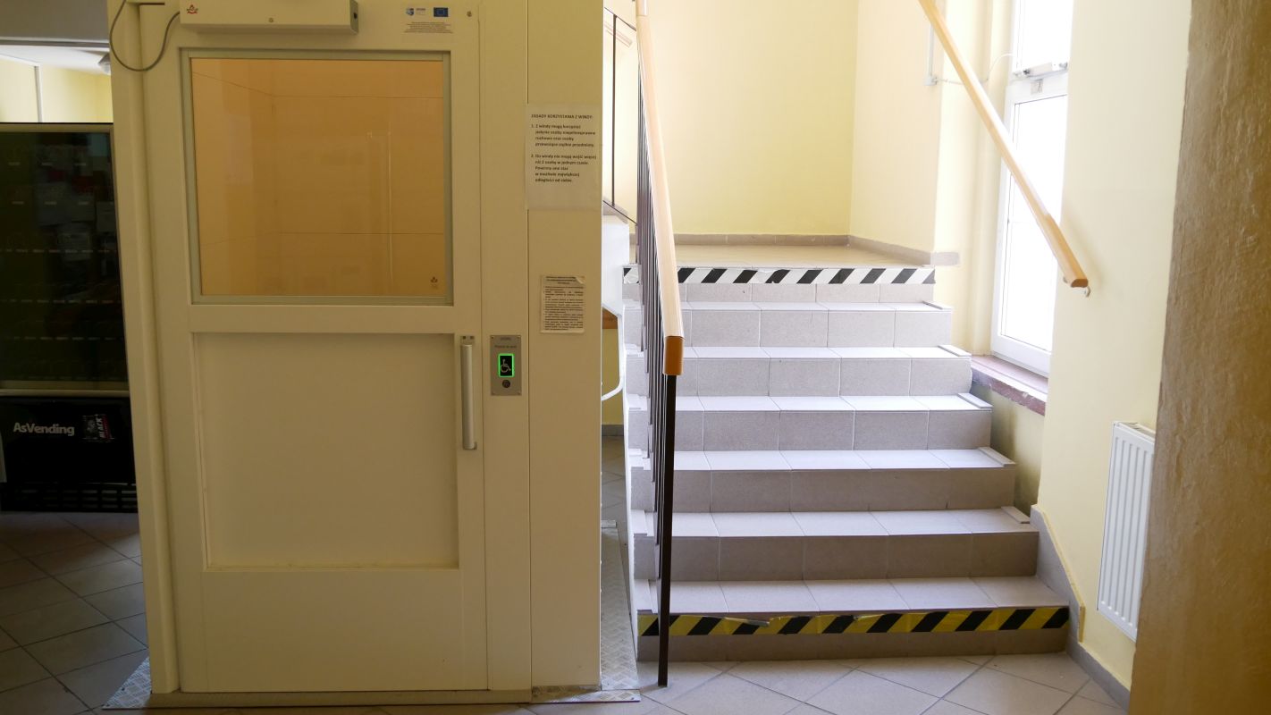 • obiekty uczelniane wyposażone są w: podjazdy, windy, podnośniki przychodowe, a budynki oznakowane poprzez wskazanie kierunku wejścia dostępnego dla osób ze szczególnymi potrzebami