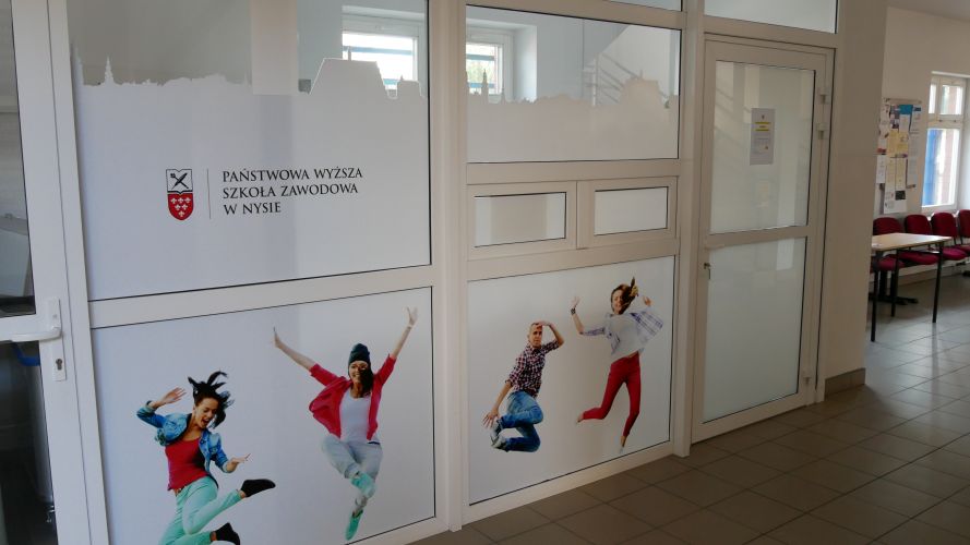 • większe powierzchnie szklane w obiektach, oznakowano żółtymi pasami (dla osób słabowidzących)